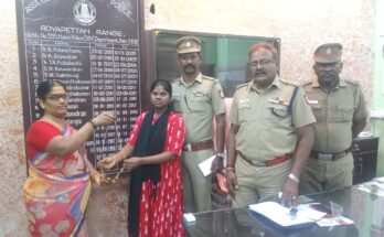 நிலைய ஆய்வாளர் திரு.கோவிந்தராஜ், உதவி ஆய்வாளர் திரு. ராமச் சந்திரன், தலைமைக் காவலர்கள் அசோக்குமார் (த.கா.27169), பிரவீன்குமார் (த.கா.26689) மற்றும் முதல்நிலைக் காவலர் சரவணன் (மு.நி.கா.36105), N-4 மீன்பிடி துறைமுகம் காவல் நிலைய உதவி ஆய்வாளர்கள் திரு.G.செல்வகுமார், திரு.S. சுப்ரமணி, தலைமைக் காவலர் S.சதிஷ்குமார் (த.கா.26583) மற்றும் முதல்நிலைக் காவலர் A.செந்தில்குமார் (மு.நி.கா.29356) மற்றும் பெண் காவல் ஆய்வாளர்கள் திருமதி.அனுராதா, W-16 புளியந்தோப்பு அ.ம.கா.நி., திருமதி.C.தனம்மாள், W-15 இராயபுரம் அ.ம.கா.நி., திருமதி.தாரணி, W-5 வேப்பேரி அ.ம.கா.நி., மற்றும் திருமதி. J.கஜலஷ்மி, JAPU (2), புனித தோமையர்மலை ஆகியோரை சென்னை பெருநகர காவல் ஆணையாளர் திரு.அ.கா.விசுவநாதன், இ.கா.ப அவர்கள் 20.9.2019 அன்று நேரில் அழைத்து வெகுமதி வழங்கி பாராட்டினார்.