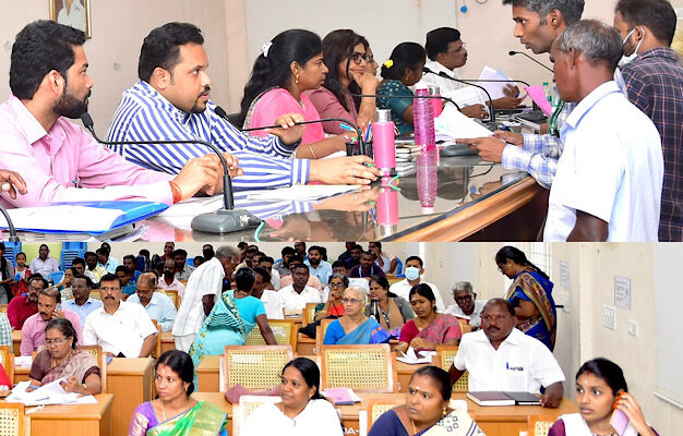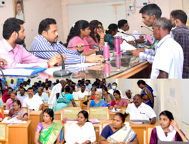 செங்கல்பட்டு மாவட்ட ஆட்சியர் அலுவலக கூட்டரங்கில் மாவட்ட ஆட்சித் தலைவர் ஆ.ர.ராகுல் நாத், இ.ஆ.ப., தலைமையில் மக்கள் குறை தீர்க்கும் நாள் கூட்டம் (22.01.2024) நடைபெற்றது. இக்கூட்டத்தில் சாலை வசதி, குடிநீர் வசதி, மின்சார வசதி, போக்குவரத்து வசதி, பட்டா மாற்றம், முதியோர் உதவித்தொகை போன்ற பல்வேறு வகைப்பட்ட 256 மனுக்கள் பெறப்பட்டது. இம்மனுக்கள்மீது உரிய நடவடிக்கை மேற்கொள்ளுமாறு துறைச் சார்ந்த அலுவலர்களுக்கு மாவட்ட ஆட்சித் தலைவர் உத்தரவிட்டார்.
