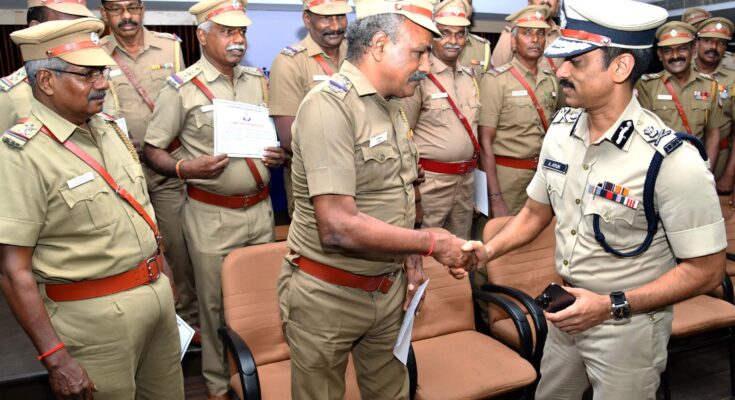 சென்னை பெருநகர காவல் ஆணையாளர் ஆ.அருண் வேப்பேரி, சென்னை பெருநகர காவல் ஆணையரகத்தில் நடைபெற்ற பணி நிறைவு விழாவில், சென்னை பெருநகர காவலில் பணிபுரிந்து 31.07.2025ம் தேதி ஓய்வு பெறற 24 காவல் துறையினர், சுமார் 25 ஆண்டுகளுக்கும் மேலாக சிறப்பாக பணிபுரிந்ததை பாராட்டி, தமிழக காவல்துறைக்கும், சென்னை பெருநகர காவல்துறைக்கும் பெருமை சேர்த்ததை நினைவு கூர்ந்து, சால்வை மற்றும் மாலை அணிவித்து பாராட்டி, சான்றிதழ்கள் வழங்கினார்.காவல் ஆணையாளர் ஓய்வு பெறுகின்ற காவல் குடும்பத்தினரிடம், காவல்துறைக்கு ஒத்துழைப்பு அளித்தமைக்காக நன்றி தெரிவித்தும், பணி ஓய்வு பெறுகின்ற காவல் அதிகாரிகள், அலுவலர்கள் தங்களது உடல் நலத்தையும், குடும்பத்தையும் பேணி காக்க வேண்டும் எனஅறிவுறுத்தினார். இந்நிகழ்ச்சியில் சென்னை பெருநகர காவல் கூடுதல் ஆணையாளர்