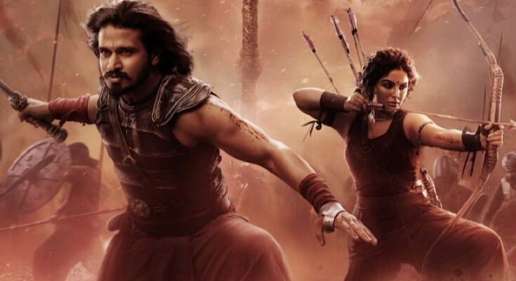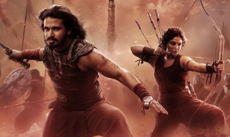 இந்த பதாகையில் நிகில் தீவிரமாகவும் வலுவானவராகவும் போர்க்களத்தின் நடுவில் வாளேந்தி நிற்கிறார். வில் மற்றும் அம்புடன் சம்யுக்தாவும் வீரப்பெண்மணியாக இந்த போஸ்டரில் இருக்கிறார். இந்த போஸ்டரே படம் எந்தளவுக்கு பிரம்மாண்டமாக இருக்கும் என்பதை உணர்த்துகிறது.