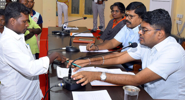 ராமநாதபுரம் மாவட்ட ஆட்சியர் அலுவலக கூட்டரங்கில் (29.01.2024) மாவட்ட ஆட்சித்தலைவர் பா.விஷ்ணு சந்திரன்,இ.ஆ.ப., தலைமையில் மக்கள் குறைதீர்க்கும் நாள் கூட்டம்நடைபெற்றது. இக்கூட்டத்தில் மாவட்ட ஆட்சித்தலைவர் பொதுமக்களிடம் பல்வேறுகோரிக்கைகள் குறித்த 330 மனுக்கள் பெற்று மனுதாரரின் முன்னிலையில் மனுக்களை விசாரணை செய்து தொடர்புடைய அலுவலர்களிடம் மனுக்களை வழங்கி உரிய நடவடிக்கையினை விரைந்துமேற்கொள்ள அலுவலர்களுக்கு உத்தரவிட்டார்.