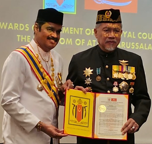 நான்கு வருடங்களுக்கு முன்பு மலேசிய அரசின் உயரிய விருதான டத்தோ ஸ்ரீ விருது ஆர்.கேவுக்கு வழங்கப்பட்டது. அது மட்டுமல்ல ATJEH DARISSALUM மன்னர் கைகளாலும் டத்தோ ஸ்ரீ விருது பெற்றவர் தான் ஆர்கே. இந்த நிலையில் தற்போது ATJEH DARISSALUM மன்னருக்கு அடுத்ததாக கருதப்படும் டான் ஸ்ரீ என்கிற உயரிய விருதையும் ATJEH DARISSALUM மன்னர் கையால் பெற்றுள்ளார் ஆர்.கே. இது கிட்டத்தட்ட பிரிட்டிஷ் அரசு வழங்கும் ‘சர்’ பட்டத்திற்கு நிகரானது. இந்த விருது வழங்கும் விழா சமீபத்தில் மலேசியாவில் நடைபெற்றது. ஆர்கேவை மேலும் சிறப்பிக்கும் விதமாக கிட்டத்தட்ட 400 வருடம் பழமை வாய்ந்த, தனக்கு இன்னொரு மன்னரிடம் இருந்து பரிசாகக் கிடைத்த இரண்டு வாள்களையும் அந்த நாட்டின் நினைவுச் சின்னமாக ஆர்கேவுக்கு தன் கையால் பரிசளித்துள்ளார் ATJEH DARISSALUM மன்னர். அவற்றை இந்தியாவுக்கு கொண்டுவந்து பெருமை சேர்த்துள்ளார் ஆர்கே.. இதுவரை இந்தியாவில் இப்படி ஒரு கௌரவம் பெற்ற முதல் நபர் என்றால் அது நம் நடிகர் ஆர்கே மட்டும் தான் .